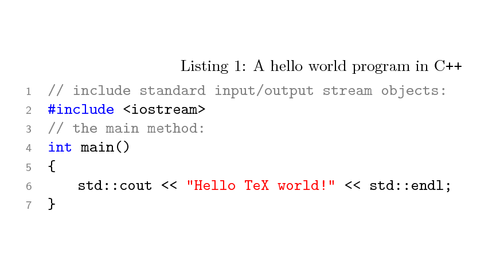 std::cout << "Hello TeX world!" << std::endl;